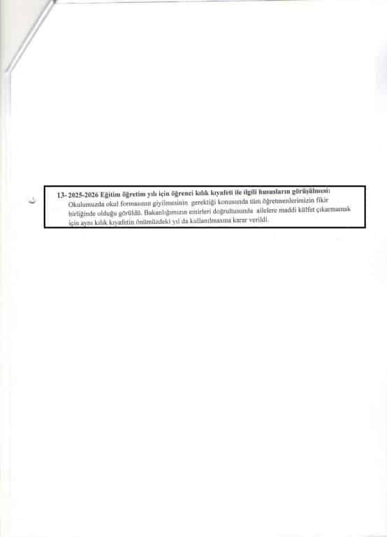 Okulumuzun aldığı Öğretmenler kurulu karar maddesi ve formamız